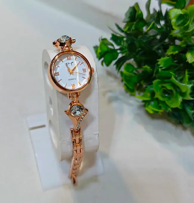 Upgrade your style with this beautiful FT Gold Ladies Watch featuring a luxurious textured dial and a stunning crystal leaf bracelet design. Its elegant gold finish and reliable quartz movement make it the perfect accessory for both daily wear and special occasions.