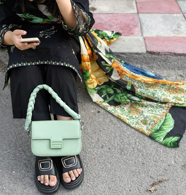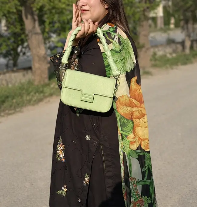 Add a pop of color to your outfit with our stunning sage green handbag, crafted from high-quality leather with a pebbled texture