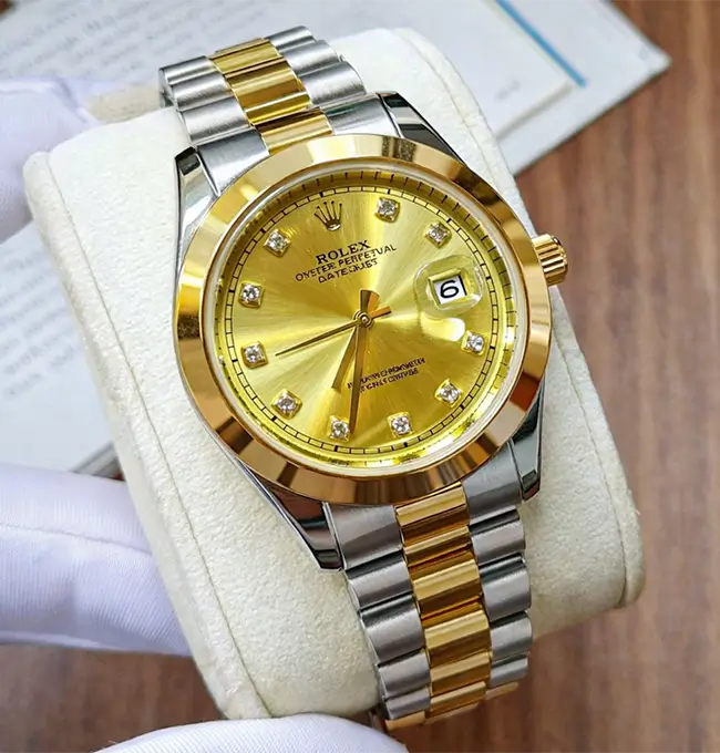 Rolex Datejust 41mm DLC-PVD luxury watch with water resistance, automatic Swiss movement, and a 1-year warranty—perfect blend of elegance and durability.